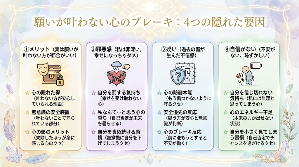 - 無意識の安全装置(叶わないことで守られている部分)